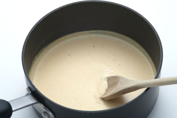 While rice is cooking, heat milk to a boil and thicken by stirring starch mixture into simmering milk. Remove thickened milk from heat and, while still hot, stir in cheeses to melt. Once smooth, season with Worcestershire sauce, nutmeg, cayenne powder and salt.