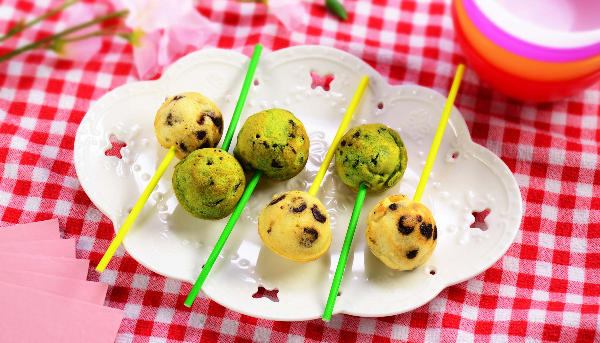 bamboo skewers into the cake balls about half-way and transfer to a plate.