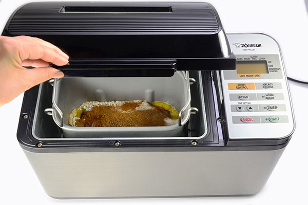 Make sure the kneading blade(s) are properly attached and add the Bread Dough ingredients to the baking pan in the order listed.