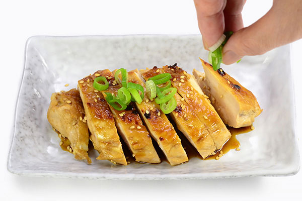 Here is a Japanese style teriyaki chicken. We used rice vinegar in the sauce to keep the meat tender and savory. Enjoy while warm!