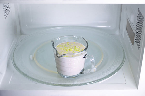Place coconut milk and sliced lemongrass in the pitcher and heat in the microwave for 30 seconds. Stir the coconut milk and heat for another 30 seconds.