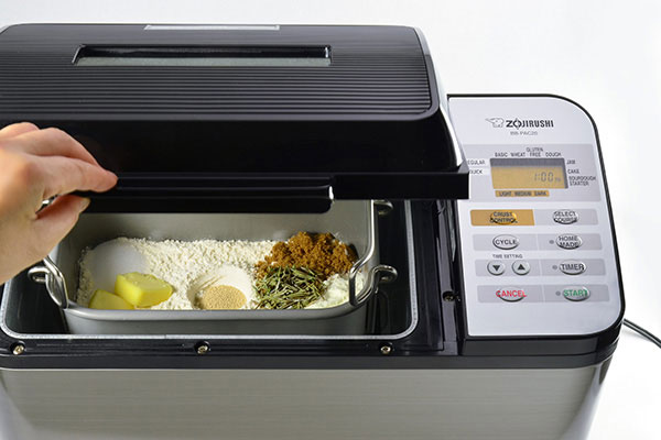 Place the baking pan into the Home Bakery, close the lid and plug the power cord into the outlet.