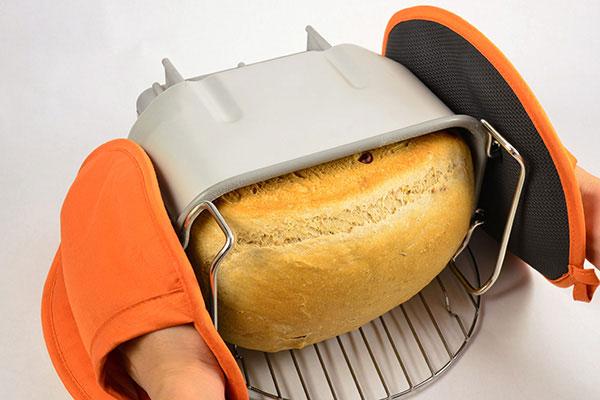 When baking completes, turn off the unit by pressing and holding the START/RESET button for BBCC-X20/BB-CEC20/BB-HAC10 model and CANCEL button for BB-PAC20 model. Take out the baking pan using oven mitts and gently shake the loaf out.