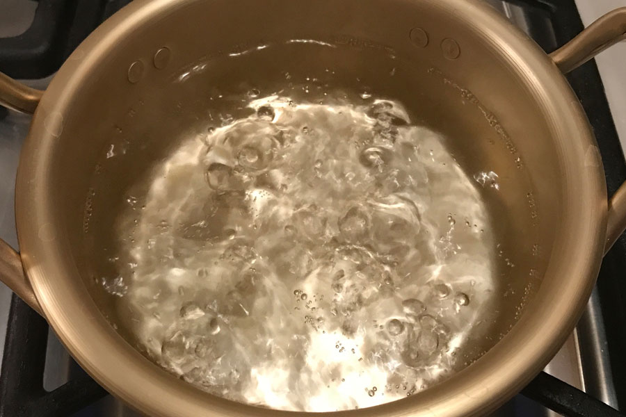 At the max temperature of 212°F, the water cannot get any hotter than this. Large bubbles are violently breaking over the surface and you’re in full agitation mode—so many bubbles that you can no longer cause any kind of break in the action by stirring. But because the heat is highest and constant now, the rolling boil is perfect for blanching vegetables or cooking pasta.