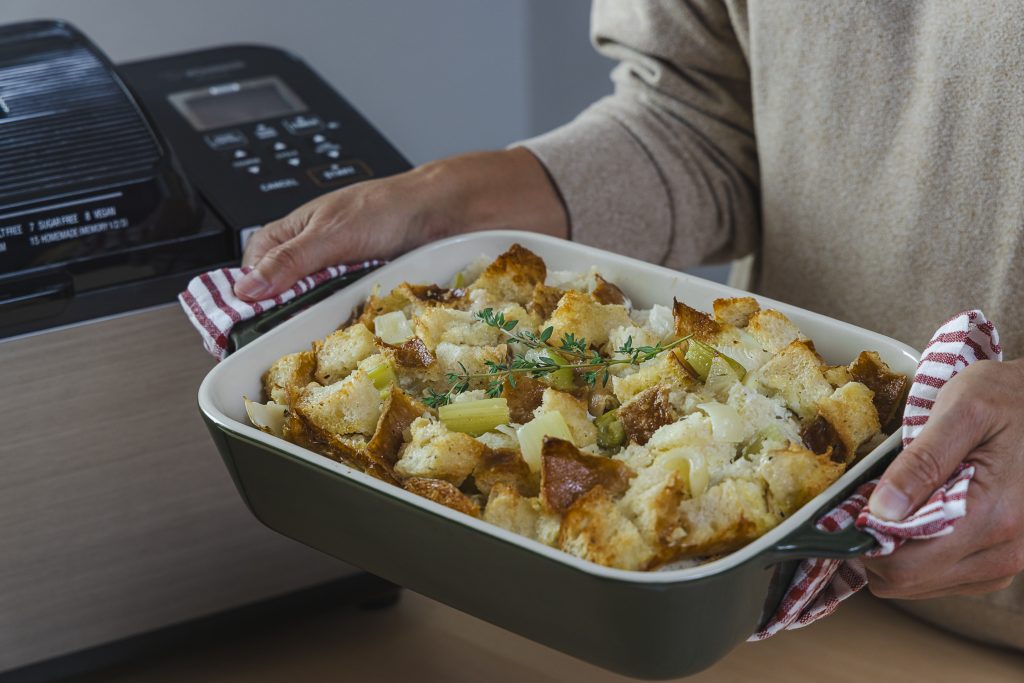 Every great holiday meal begins with something simple and satisfying, and few dishes set the tone quite like stuffing. Our Savory Bread Stuffing starts with homemade bread baked right in your Zojirushi breadmaker, giving it the perfect texture to soak up the rich flavors of butter, herbs, and vegetables.