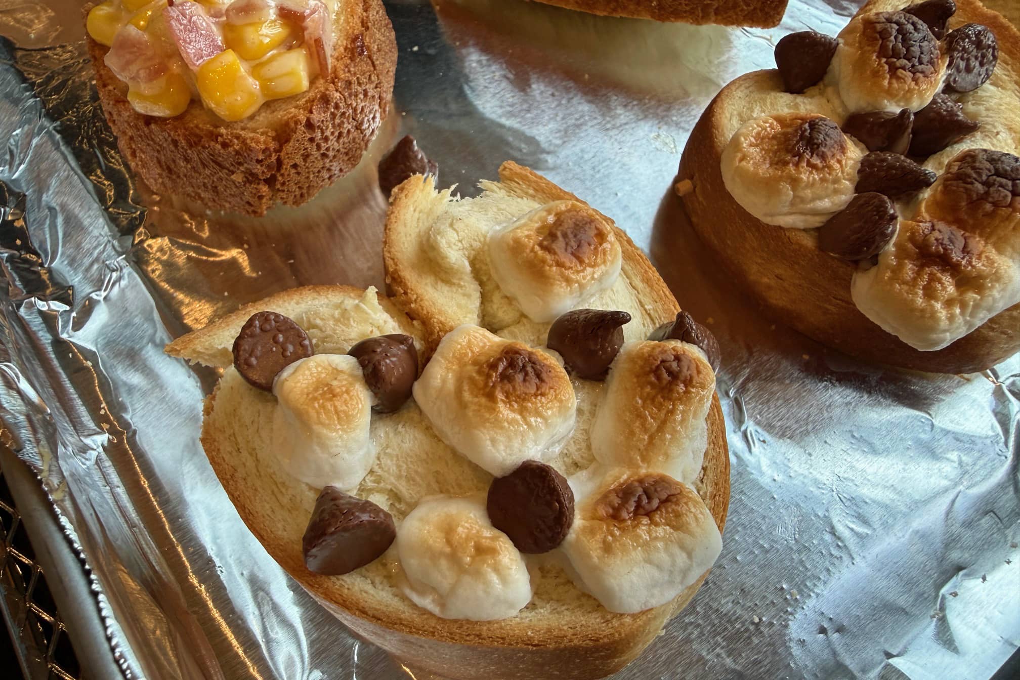 Add toppings like corn and Kewpie Mayo, pepperoni and cheese, or mini marshmallows and chocolate chips. Toast them in your toaster oven. marshmallow s'mores on heart toast
