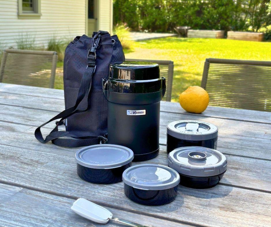 The lunch jar is a complete, self-contained meal system. It features a vacuum insulated outer container that holds multiple microwaveable inner bowls stacked inside. Depending on the model, you get two, three, or four separate compartments, making it easy to pack a full, varied meal: rice in one bowl, soup in another, a side dish in a third. Foods stay separated, flavors stay distinct, and everything stays warm together inside the insulated outer container. Zojirushi calls it “Genius Bento”—and once you use one, it is easy to see why.