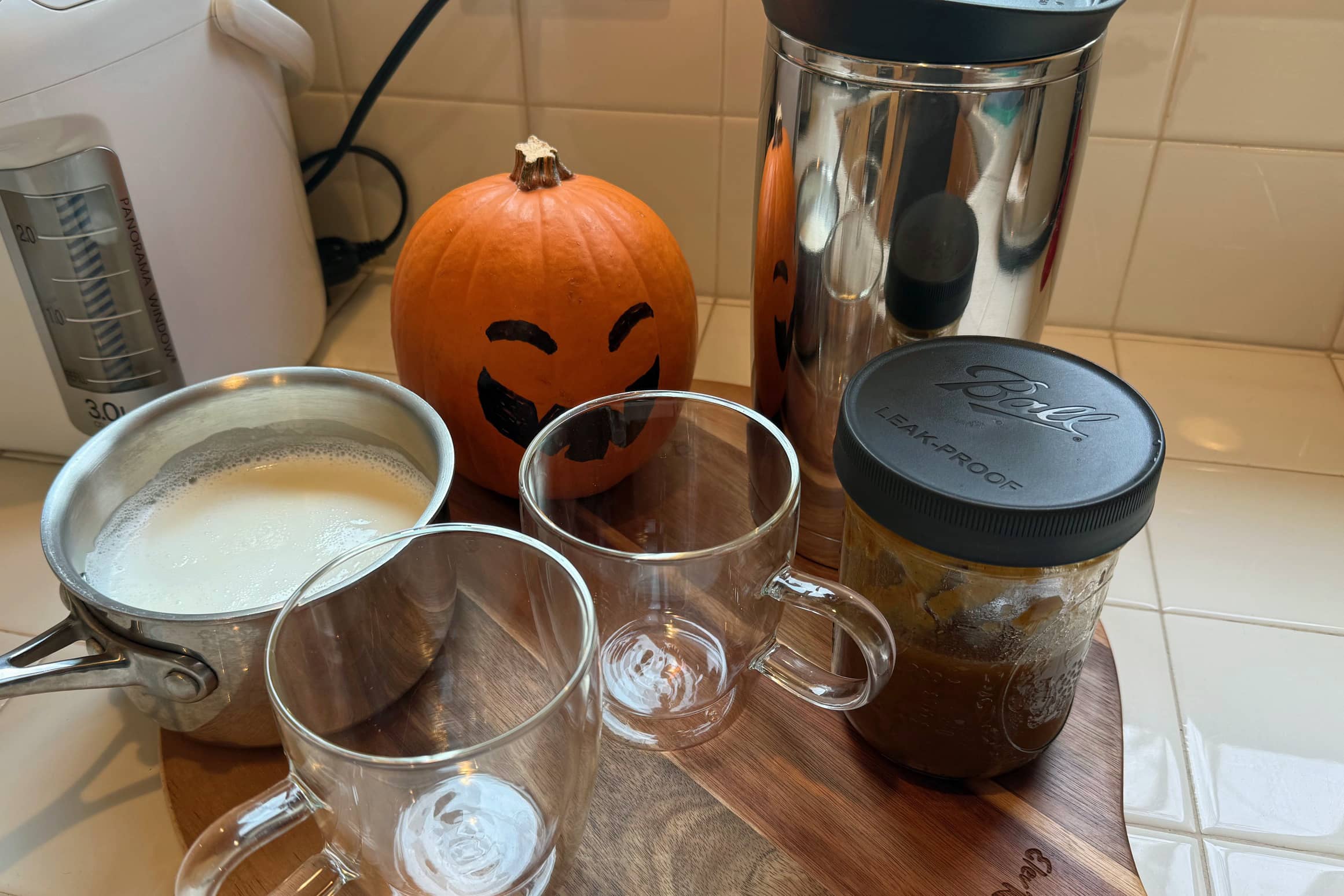 After that, all you do is assemble the drink and top it off with whipped cream if you want. I have to admit, I now have a new respect for why this drink is so popular every time October rolls around. Even my daughter the coffee connoisseur liked it, and she said it didn’t taste artificial like the one they have at that famous coffee shop that’s on every corner. She should know—she used to work there. Ha!